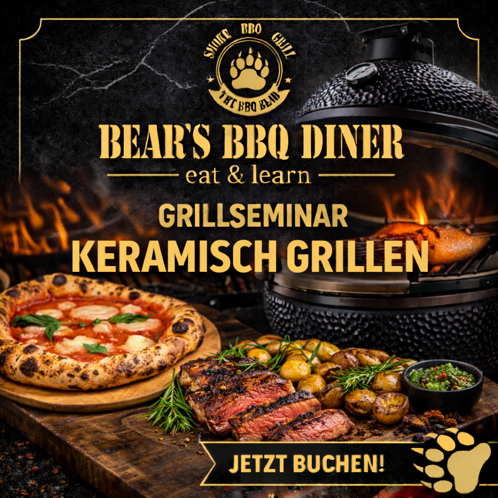 Entdecke die vielfältigen Möglichkeiten des Keramikgrillens! Dieser Kurs ist für alle, die ihren Keramikgrill optimal nutzen wollen. Du lernst die Grundlagen des indirekten und direkten Grillens sowie das Backen und räuchern – alles mit einem einzigen Grillgerät.
